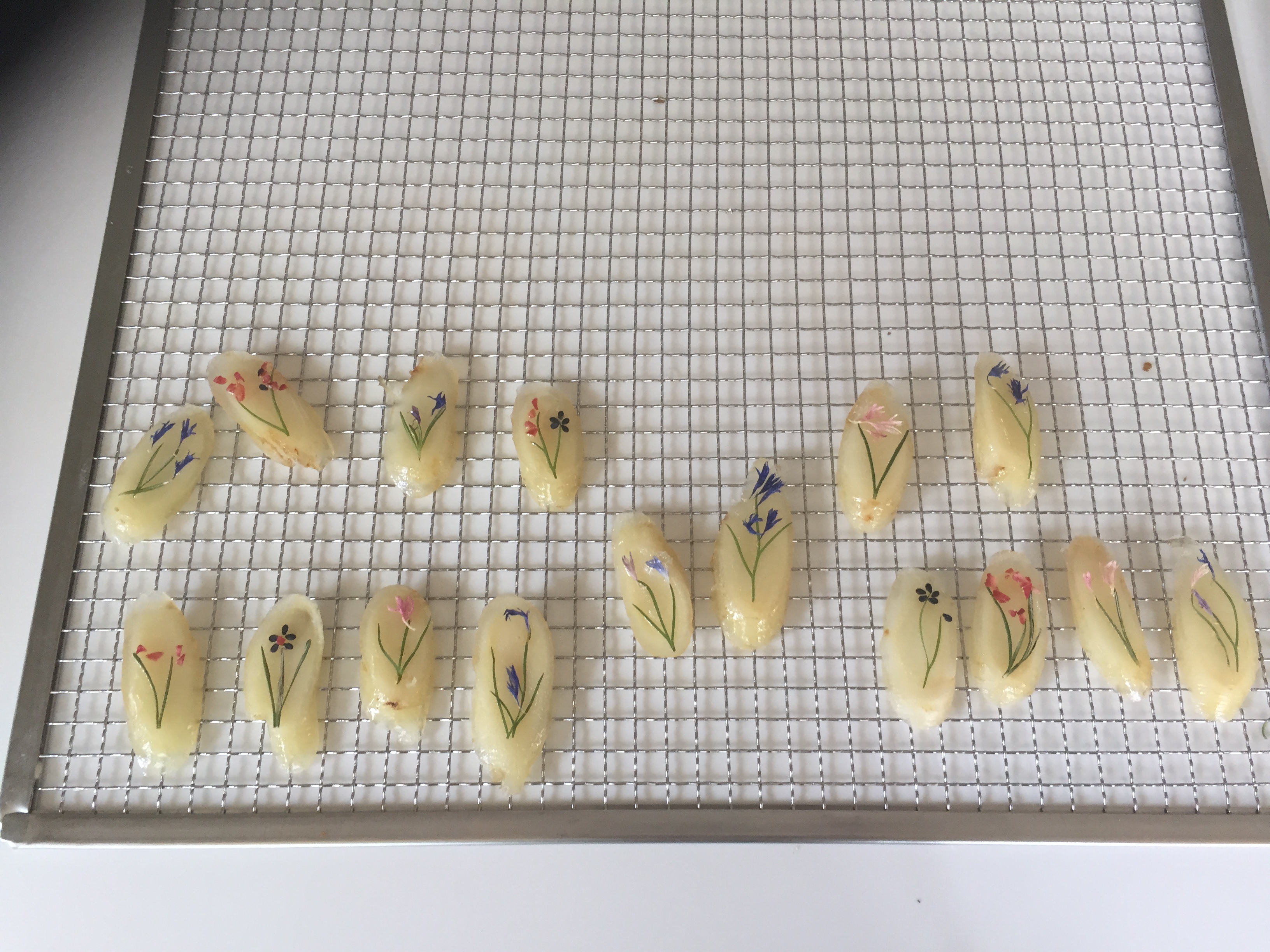 꽃과 이파리로 눈알이 빠지도록 모양을 낸 인삼 정과. 인삼 그다지 좋아하지 않는데 이건 적당히 달고 예쁘고 맛도 좋았음. 어르신 선물용으로 딱이지 싶다.